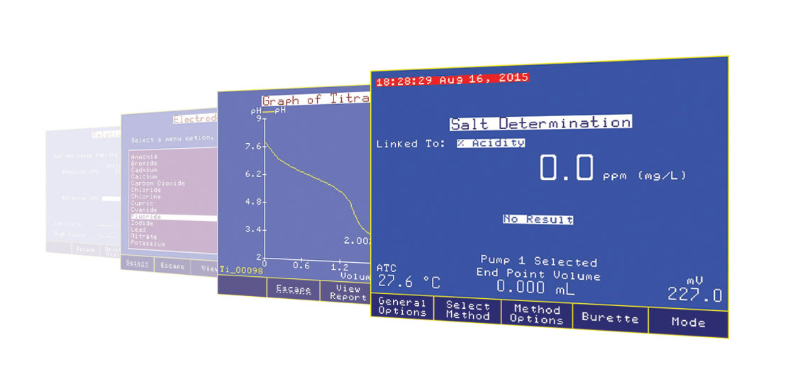 Tùy theo loại điện cực kết nối mà thiết bị có thể chuẩn độ acid – base, oxy hóa khử, tạo phức, tạo tủa, khan….