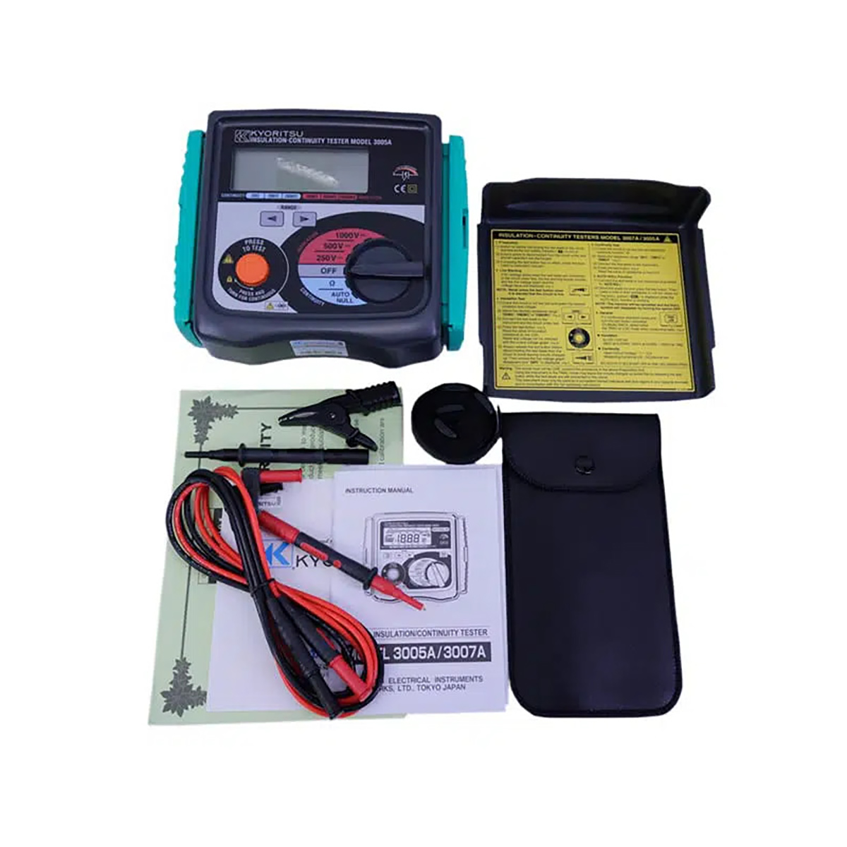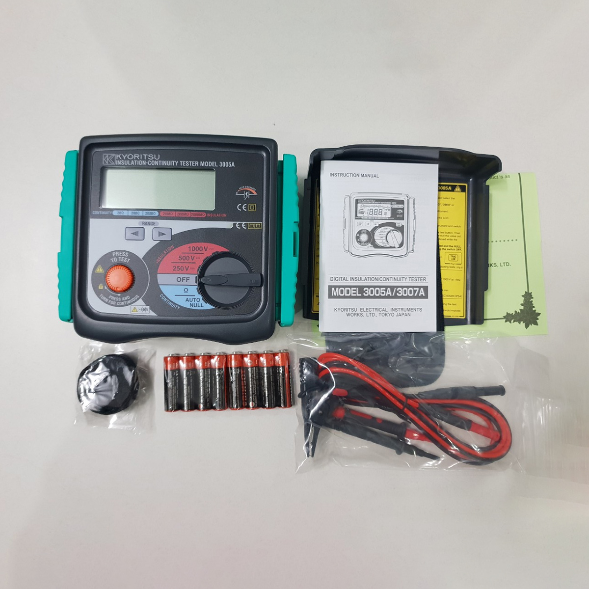 | Phụ kiện kèm theo Kyoritsu 3005A | Que đo 7122B, cầu chì 8923 (F500mA/600V fuse) × 2, Pin R6 (AA) × 8, dây đeo, sách hướng dẫn |