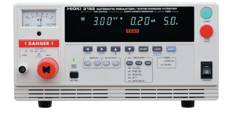 Thiết bị Hioki 3153 dùng để đánh giá an toàn điện tử được thiết kế với mục đích đo điện trở cách điện và khả năng chịu điện áp của các thiết bị và linh kiện điện tử theo các chuẩn an toàn khác nhau. Hioki 3153 là máy kiểm tra tự động cách điện và khả năng chịu điện áp AC/DC, hỗ trợ triệt để quá trình kiểm tra tự động.