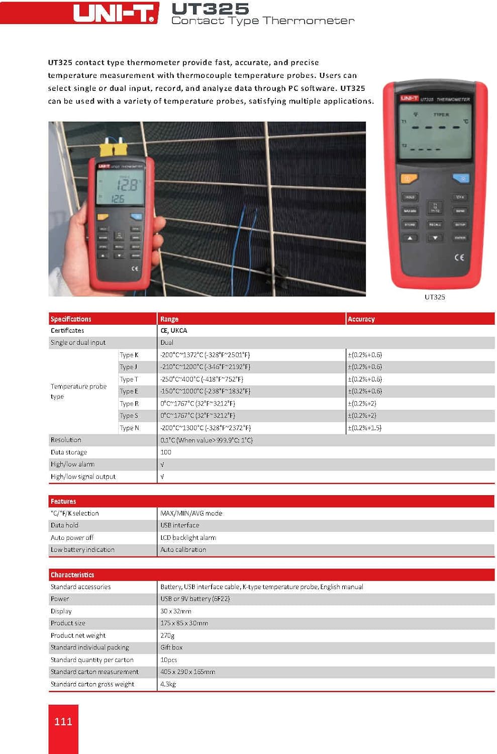 Thiết bị UT325 cung cấp khả năng đo lường chính xác và đáng tin cậy, đáp ứng nhu cầu đo nhiệt độ trong nhiều ứng dụng khác nhau.