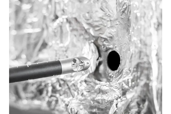 Với máy đo tốc độ gió cánh quạt nhỏ gọn 16 mm Testo 416 0563 0416 có sự kết nối ứng dụng và ống dò có thể thu vào, bạn có thể tiến hành đo lưu lượng trong các ống thông gió của hệ thống điều hòa và thông gió một cách dễ dàng, nhanh chóng và chính xác. Ống dò tích hợp có thể được mở rộng lên đến 850 mm, giúp việc làm việc phía trên đầu hoặc trong các ống có đường kính lớn trở nên dễ dàng hơn.