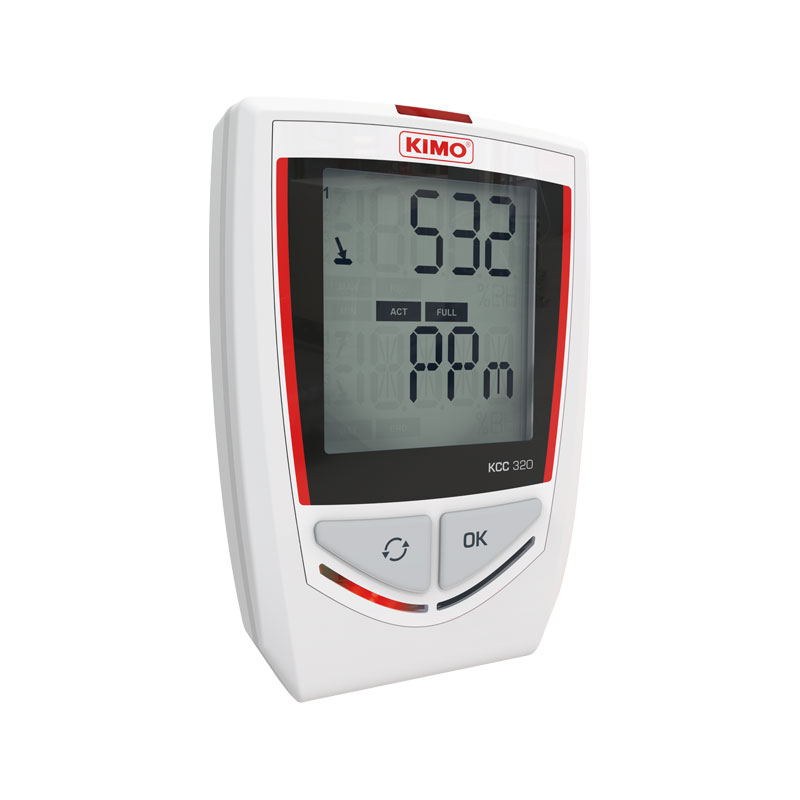 Thiết bị ghi nhiệt độ, độ ẩm, áp suất khí quyển, khí CO2 KIMO KCC320 là một thiết bị ghi dữ liệu để đo nhiệt độ, độ ẩm không khí, áp suất khí quyển và CO2 cho khí hậu trong nhà. Thiết bị ghi chất lượng không khí này có thể ghi lại đồng thời 4 thông số và có bộ nhớ lên đến 2 triệu điểm đo.