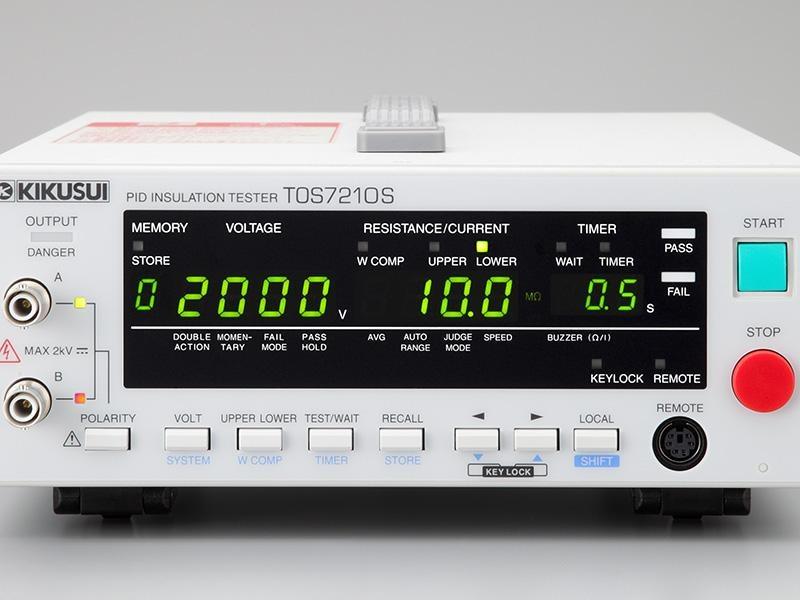 Với đầu ra 2000 V và ampe kế có độ phân giải nA cũng như chức năng chuyển đổi cực, KIKUSUI TOS7210S không chỉ được sử dụng cho việc đánh giá PID mà còn cho các chất cách điện yêu cầu độ nhạy cao. Máy kiểm tra được trang bị bộ nhớ bảng điều khiển có thể truy cập bên ngoài và giao diện RS232C theo tiêu chuẩn. Nó có thể tương thích linh hoạt với hệ thống tự động.