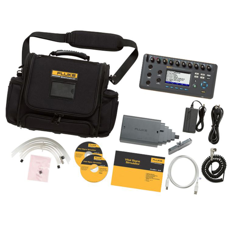 Thiết bị kiểm tra, hiệu chuẩn Monitor theo dõi bệnh nhân tất cả trong một Model: ProSim 8 cho phép kiểm tra bảo dưỡng phòng ngừa nhanh và toàn diện đối với toàn bộ các máy theo dõi bệnh nhân của bạn. Được thiết kế để cho phép bạn vào và ra ở mọi nơi trong vài phút, thiết bị mô phỏng đa năng này kiểm tra ECG (kể cả ECG và loạn nhịp tim của bào thai), hô hấp, nhiệt độ, IBP , đầu ra tim/thông tim, NIBP, SpO2 và có khả năng mô phỏng các dạng sóng nhiều bước của Rainbow.