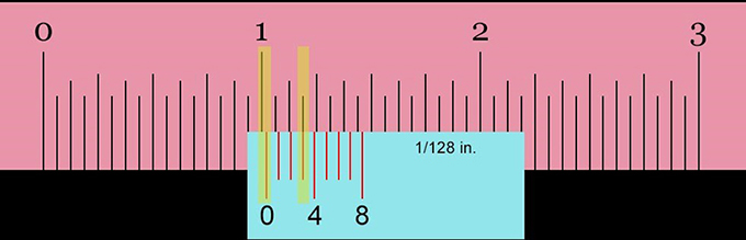 Đọc giá trị đo hệ inch với du xích 1/128’’:
