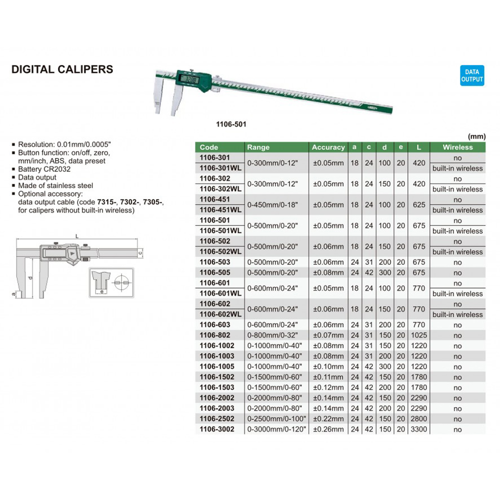 Thông Số Kỹ Thuật của thước cặp điện tử INSIZE 1106-501
