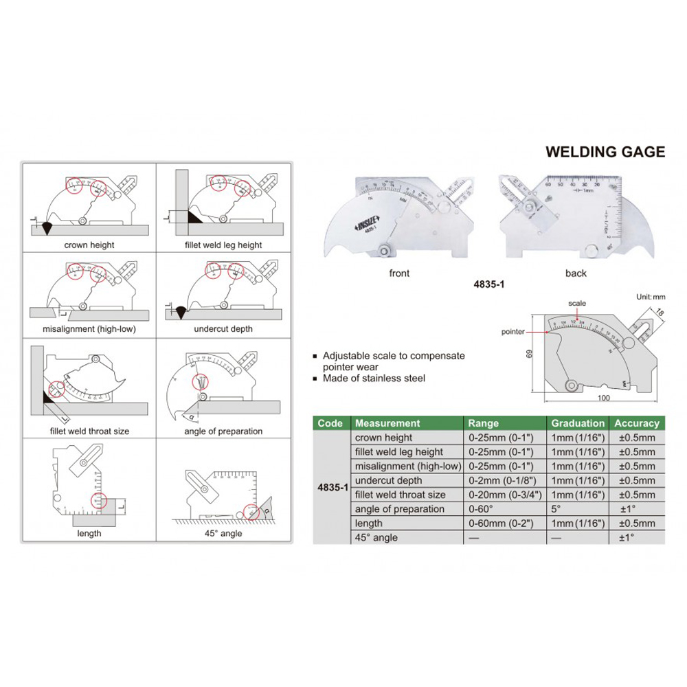 Thông số kỹ thuật thước đo mối hàn Insize 4835-1