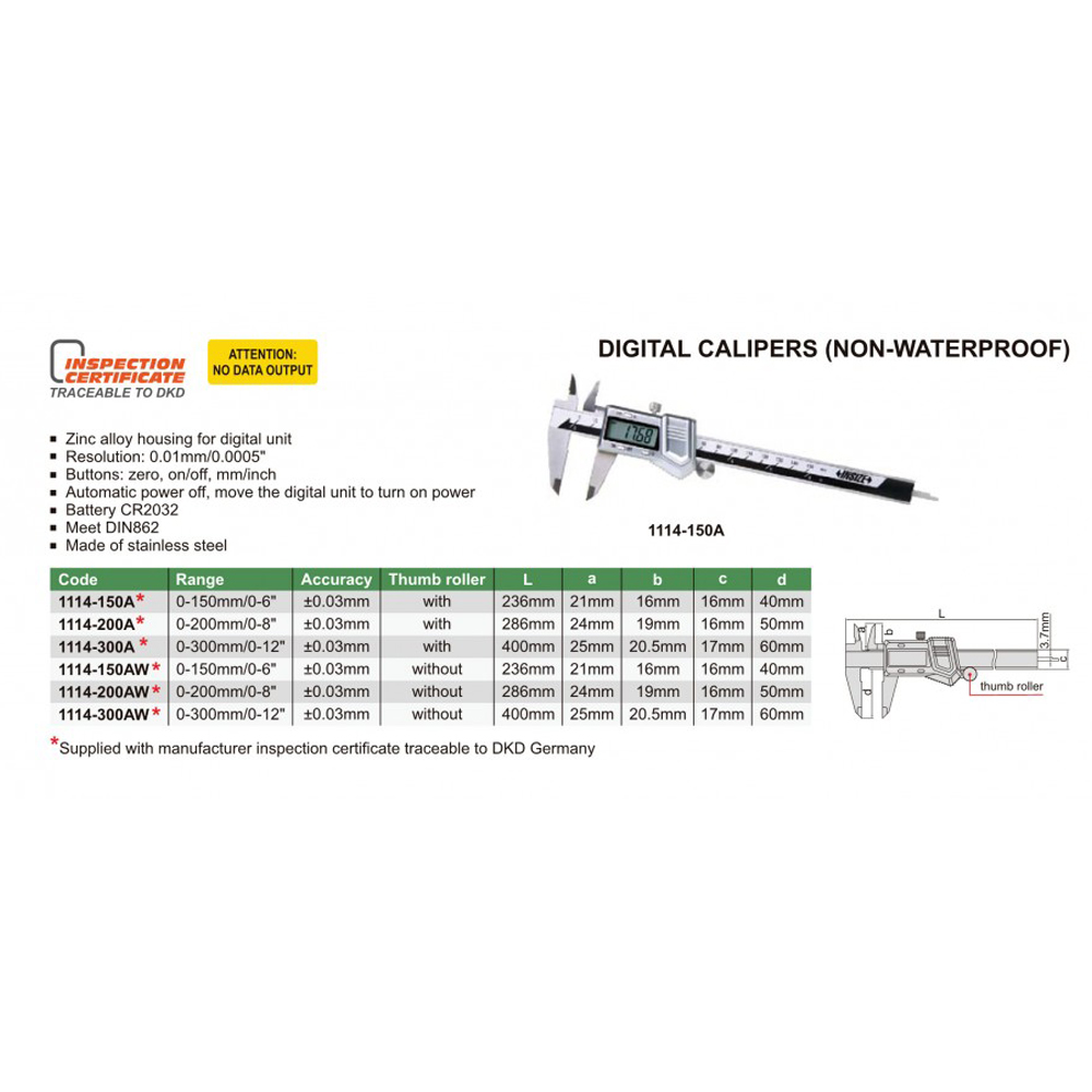 Thông Số Kỹ Thuật của thước cặp điện tử Insize 1114-200A