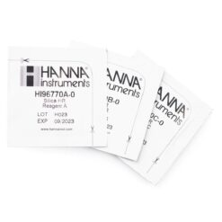 HI96770-01 là thuốc thử chất lượng cao dùng để thực hiện các phép đo so màu nhanh chóng và chính xác. Thuốc thử dựa theo phương pháp USEPA 370.1 và Phương pháp chuẩn 4500-SiO2 C phản ứng với silica tạo màu vàng trong mẫu. Nồng độ càng cao mẫu càng đậm. Kết quả đo silica được hiển thị theo mg/L (ppm). Những thuốc thử này dùng cho mẫu đo có silica từ 0 đến 200 mg/L.